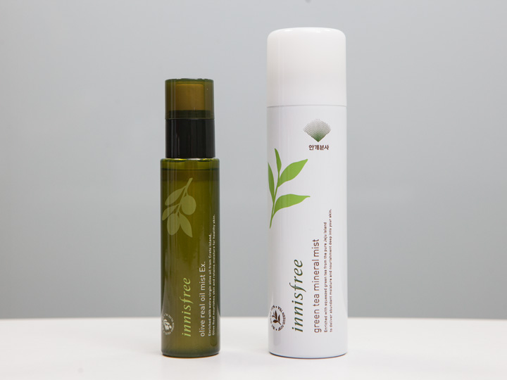 “悦诗风吟(Innisfree)”是最畅销的韩国化妆品品牌之一。“橄榄油滋润保湿喷雾”(图左,10,000韩元/80ml)富含滋润的橄榄成分,能为干燥的皮肤形成一层保护膜,发挥超强的保湿效果。“绿茶精萃矿物质喷雾”(图右,14,000韩元/120ml)比“橄榄油”更清爽,能为皮肤即刻补水。