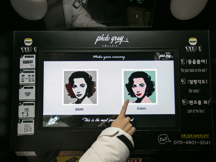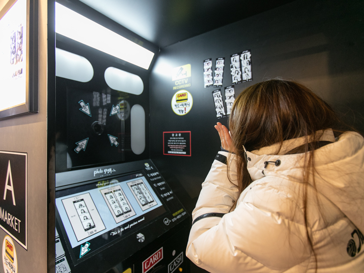 最近,首尔非常流行“4帧”大头贴。在弘大的商铺、街道、电影院中随处可见大头贴拍照机。