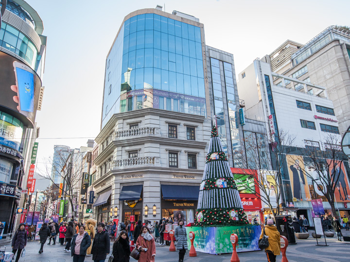 12月的首尔,气温持续下跌。预计最冷时,气温将跌至零下15℃。伴随着慈善锅清脆的铃声,明洞街道换上了圣诞节装扮。
