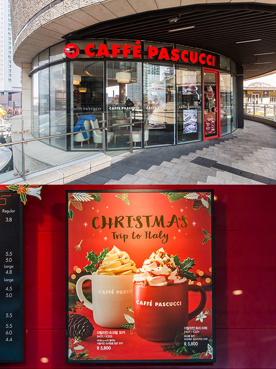 在韩剧中经常登场的“帕斯库奇”咖啡厅,则以“Christmas trip to Italy”为主题,推出能让人充分感受意大利圣诞气氛的新饮品——意大利泡芙摩卡(5,800韩元)和意大利树拿铁(5,800韩元)。这个时节来首尔旅游,去咖啡厅感受下韩国的圣诞吧!
