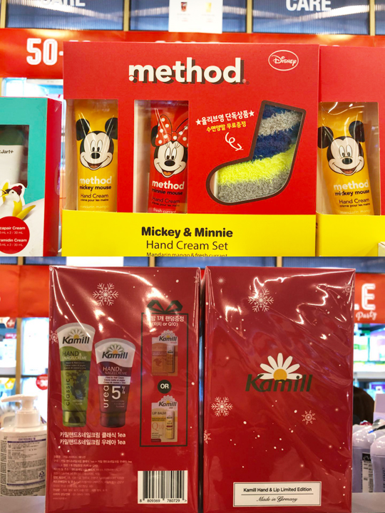此外还有“method”米老鼠护手霜和“Kamill”护手霜和润唇膏礼盒。如果不知道来韩国旅游买什么礼物,不如来欧利芙洋看看年末推出的新产品吧。※不同店铺折扣价略有不同,仅供参考。