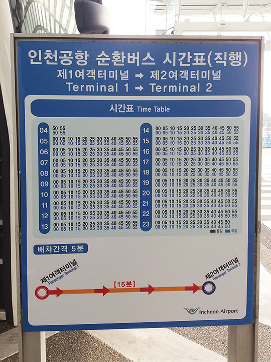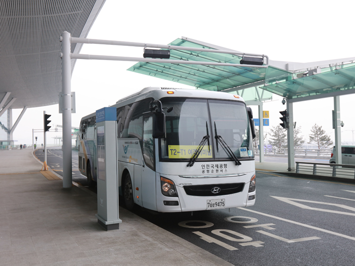 第二航站楼3层(出发层)有2个免费循环巴士站。第一航站楼方向的循环巴士站位于5号出口。运行时间为04:30至23:30,运行间隔约5分钟。到第1航站楼约20分钟。