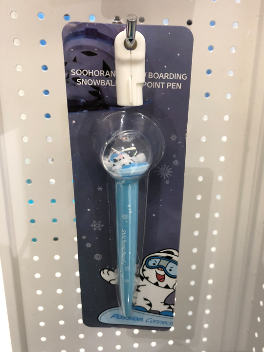 作为实用型纪念品的笔可以说是最有人气的!(照片上是雪球圆珠笔,7000韩元) 这些奥运官方商品可以在仁川国际机场,首尔站,乐天百货等购买。快来收集奥运套餐作为纪念品吧!