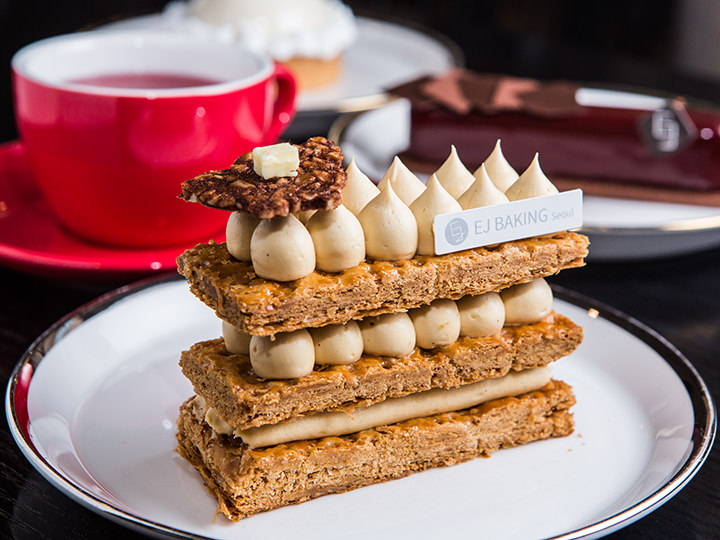 在江南站旁边的“EJ BAKING 工作室”是个由在英国和巴黎学习过甜点制作工艺的女甜点师李恩廷(音译)主理的现代式特色甜品咖啡店。