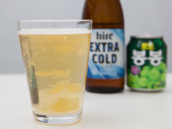 混合了酒和饮料制成的fusion酒在韩国的SNS上火速传开,其中味道最好人气又最高的就是统称为“海特葡萄”的组合。30年历史的果肉青葡萄果汁(图右 600韩元)和啤酒海特(图左 1,600韩元)的fusion版,清新的口感是人气一直高涨不下的秘诀。