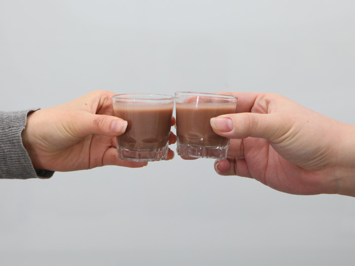 以6:4的比例把巧克A梦和烧酒混合并加以搅和,巧克力的香甜中和了酒精浓度,味道轻柔顺滑,十分适合女生饮用。