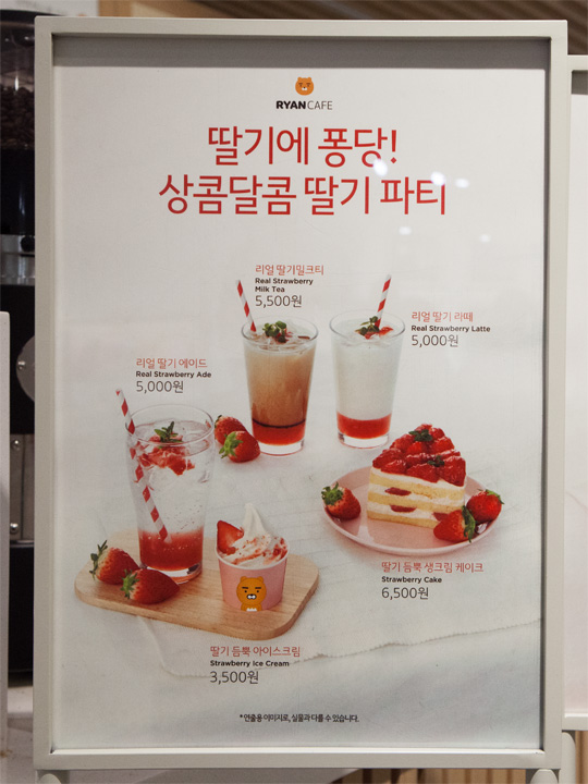 在“RYAN咖啡厅”不仅有“Kakao Friends”角色产品,还有季节性草莓甜点,来尝试下吧!