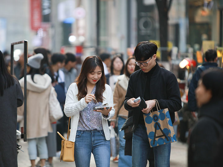 踏入初春,韩国的天气慢慢暖和起来,深受人们喜爱的明洞也迎来了络绎不绝的游客。