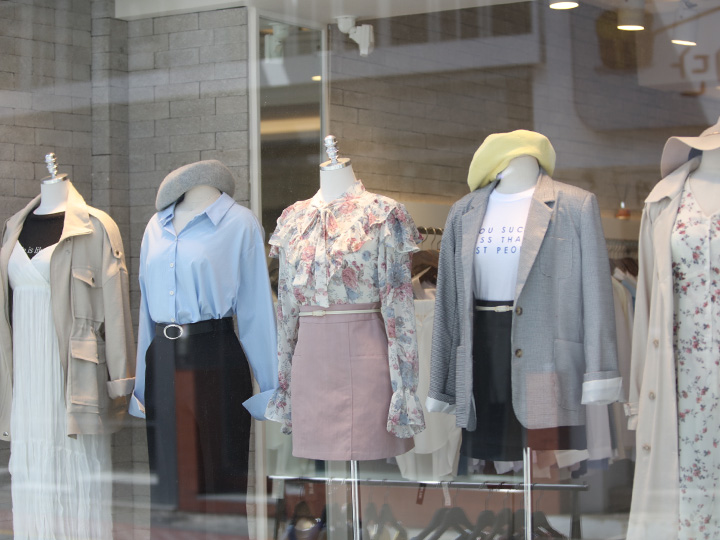 从弘大站往新村站延伸的方向,有一条购物街,那里聚集着很多大大小小的服装店,都非常的时尚好看。