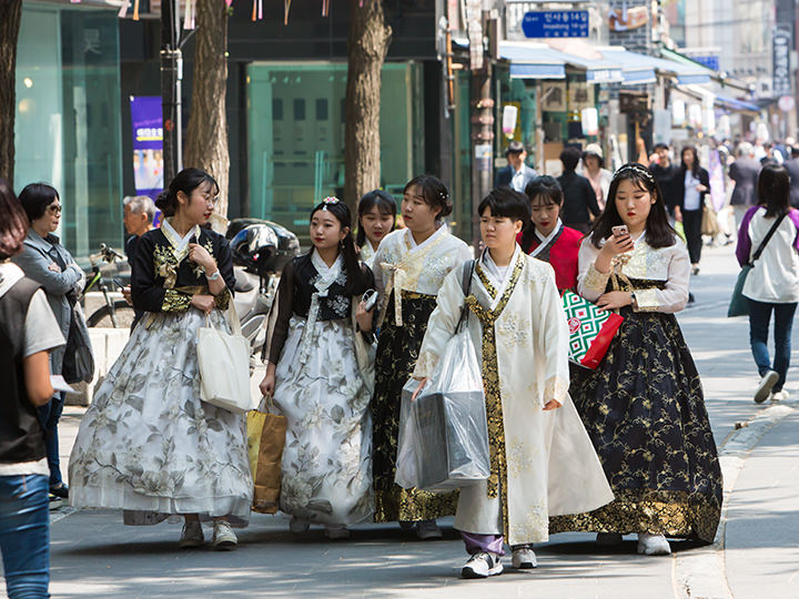 也有很多人穿着韩服在街边散步。