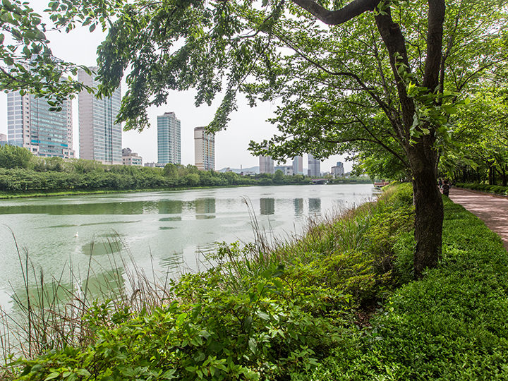波光粼粼的石村湖包围着乐天世界,比起周围喧闹的城市,这里显得格外的幽静,在这里度过美好时光也是一件特别幸福的事情。