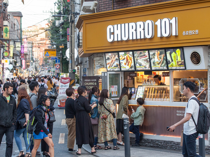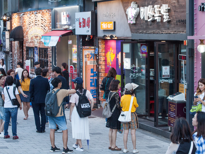 弘大的街头是众多年轻的人们会选择的地方,特别是到了周五到周日,这里热闹非凡。