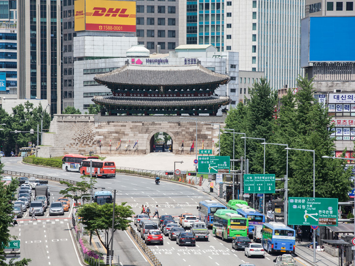 首尔的地标建筑“崇礼门”,附近还有南大门市场。