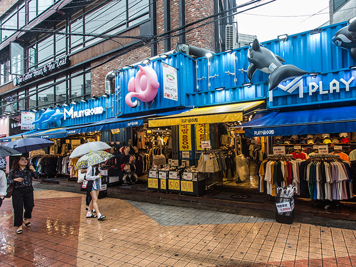 在年轻人聚集的弘大,曾经在路边展示的衣物也被收进了店铺中。