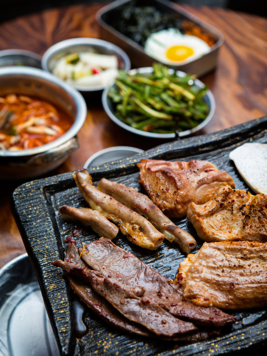 在这家深受年轻人喜爱的牛内脏店里,你可以一次享用5种不同部位,每人21,900韩元。