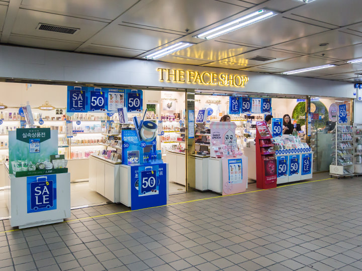 这里给还有韩国化妆品店和眼镜店。 别忘了购买热门商品!