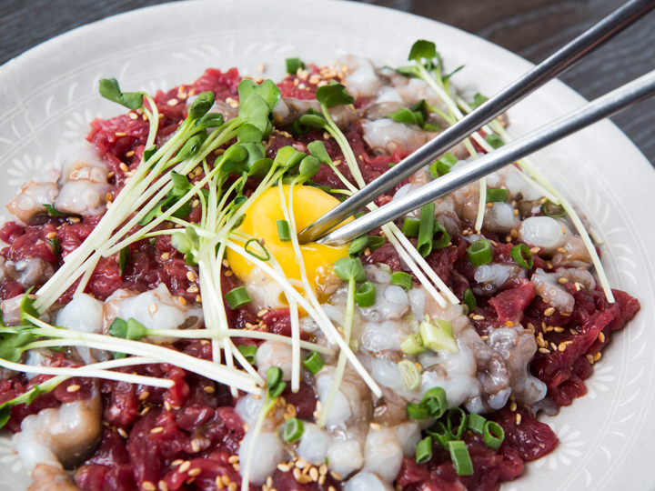 秋天是吃章鱼的季节!韩国人喜爱的黑暗料理小章鱼拌生牛肉,加上一点点香油,好吃的超出你想象!