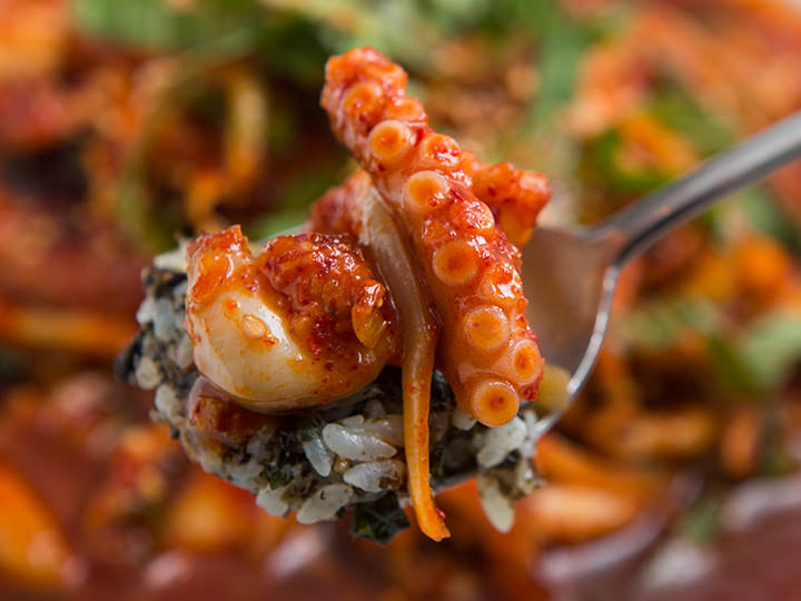 说到章鱼料理的正统美食,那一定是用韩式辣酱炒的辣炒章鱼啦~