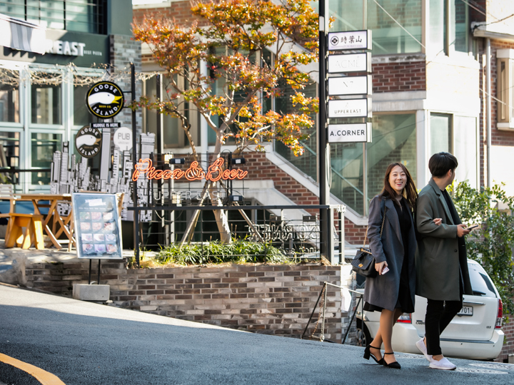 位于梨泰院西侧位置的经理团街,是各种个性商店的聚集处,走在后巷,各种时尚的咖啡馆比比皆是。