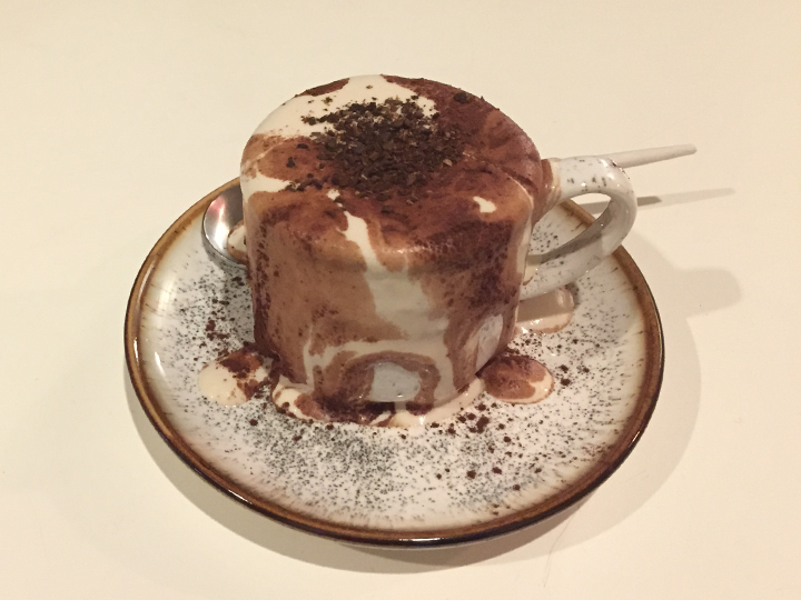 最有名的拿铁咖啡(6,000韩元),其中溢出的奶油好像一副泼墨画一般。