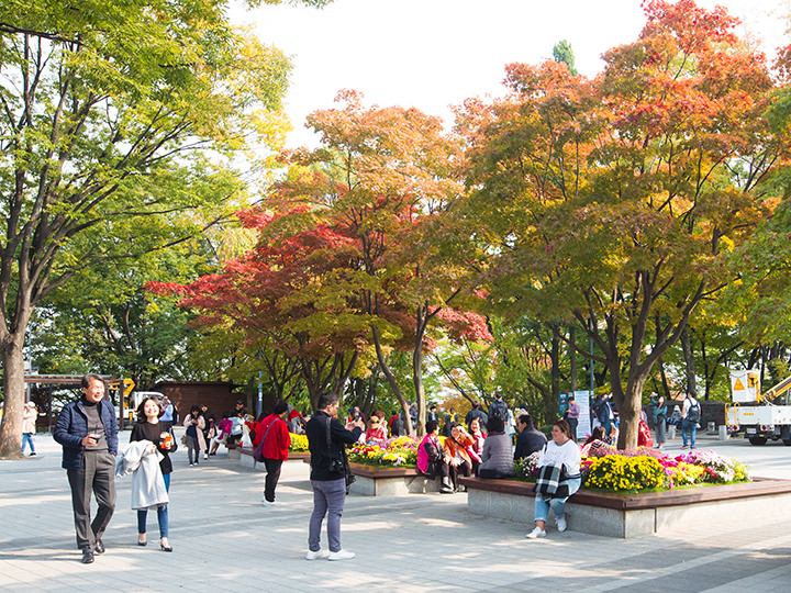 位于明洞附近的南山公园,可是个观赏枫叶的好地方。