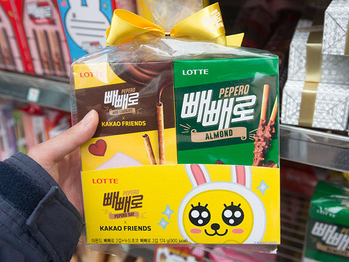 而Pepero饼干更是每年配合这个契机,与艺人或卡通角色合作推出各种各样可爱的包装,今年是与超级可爱的kakaofriends合作!这段时间在韩国旅游的亲们,不妨买一些Pepero回去送给亲朋好友吧!