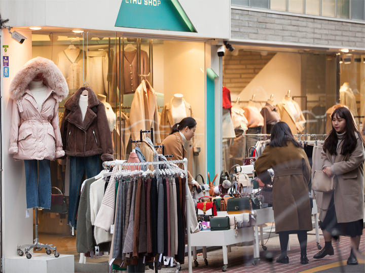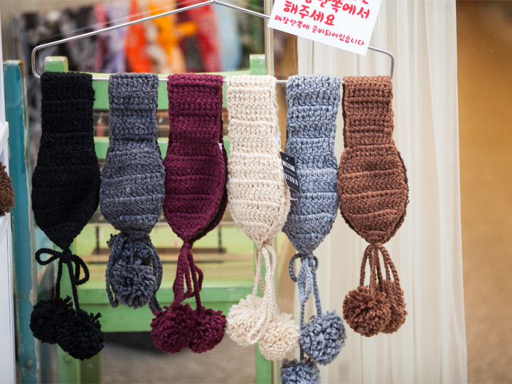 随着天气越来越冷,商家们都已经开始售卖保暖用品,比如围巾、帽子等。在弘大停车场附近的小巷子里正在售卖很多便宜又时尚的单品,来到这里一定要去逛逛。