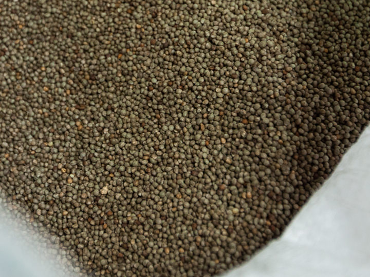 可以看到店铺里堆满了苏籽袋子。把苏籽洗干净再进行加热、烘干、榨取,在店铺里完成这一系列的制作过程。(照片里展示的是韩国产的苏籽)