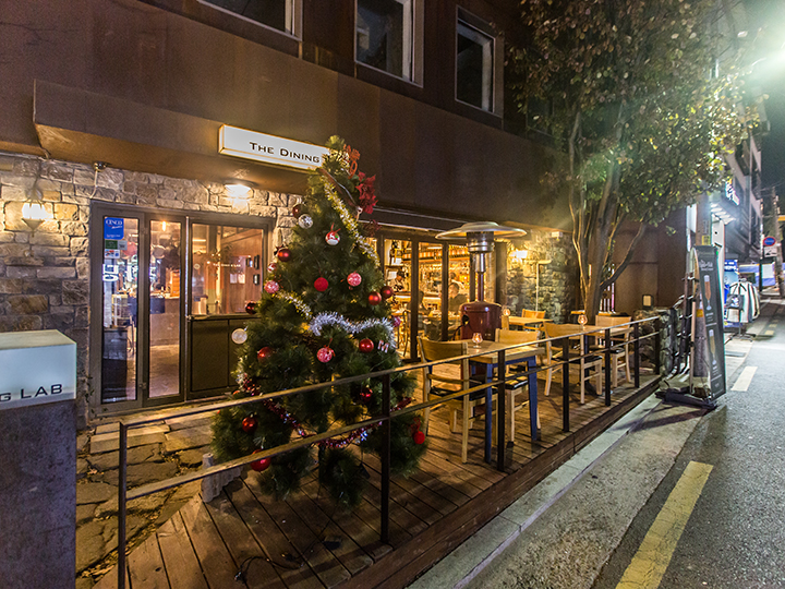 "THE DINING LAB"是由帅哥厨师亲自操刀的西餐厅,还被韩国热门美食节目所推荐过哦~餐厅门口的圣诞树使圣诞节的的浪漫气氛变得更加浓重。