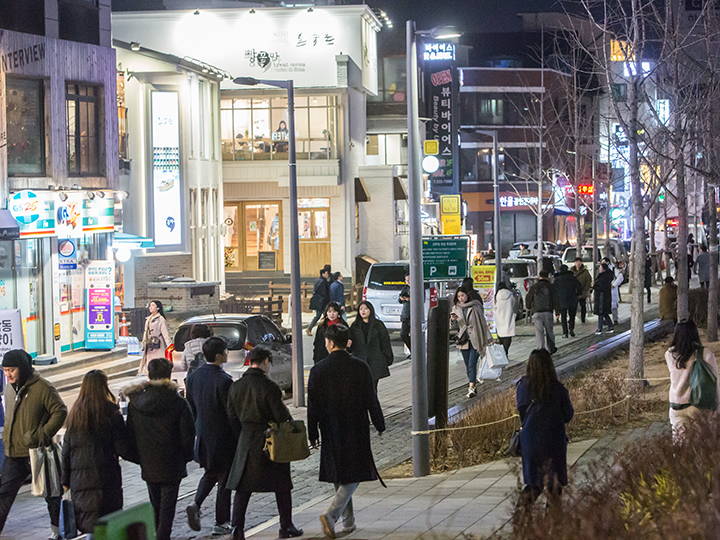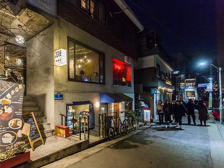 韩国人气景点延南洞!一到晚上就有众多年轻人纷纷相聚在地铁2号线和机场铁路弘大入口站的3号出口附近。