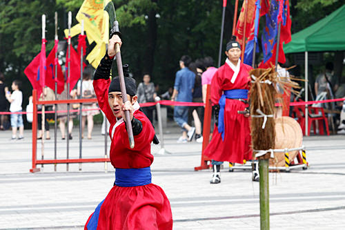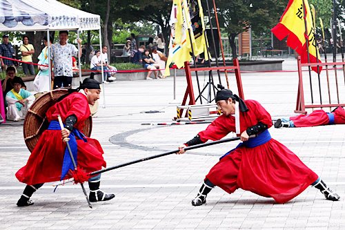 武术表演时展示的是“武艺24技”。武艺24技曾是朝鲜时代选拔武官时的科举项目,到了近现代的大韩帝国时期,则被采纳为军事武术。