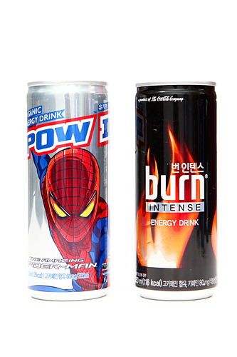 印有燃烧的火焰的“burn INTENSE(右:1,000韩元)”,是可口可乐公司推出的产品。饮料本身呈红色,爽口刺激。另外,著名面包制造商“巴黎贝甜”也推出了“POW(左:2,900韩元)”,用有机水果作为原料,吸引了人们的眼球。