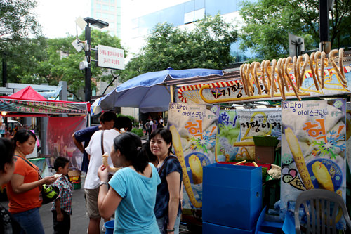 猛烈的台风“布拉万”刚过去,首尔的天空也渐渐褪去灰蒙蒙的大衣,露出原本清澈蔚蓝的模样。到仁寺洞来走走的朋友们不妨试试这新奇的“拐杖点心”!