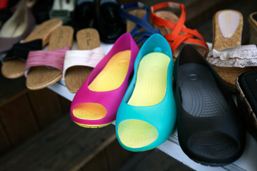 和高跟凉鞋放在一起的还有轻便的橡胶凉鞋,这种凉鞋不仅美观而且即使水漫进去也没有关系。虽然下雨天不会一直持续下去,但短暂地使用这些有趣的出行用品让下雨天有个好心情,这何尝不是一种快乐的生活方式呢?