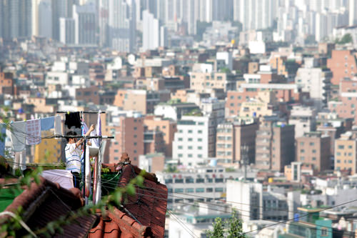这个屋顶则被做成了供人居住的空间,像这样建在屋顶上的房间在韩国被称为“屋塔房”。屋塔房在韩国是很常见的,多被主人用于出租,由于冬冷夏热,所以房价相对比较便宜。