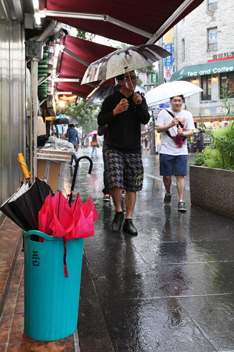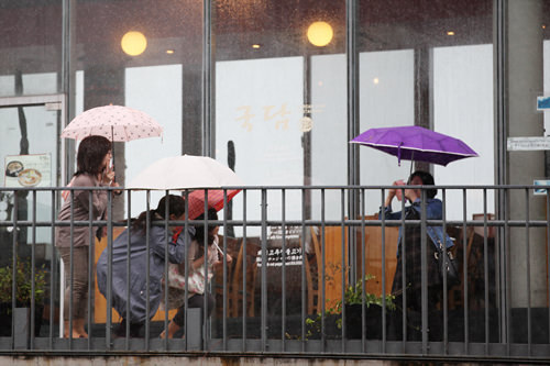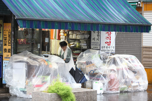 往日游客熙熙攘攘的仁寺洞也因台风影响人迹稀少。