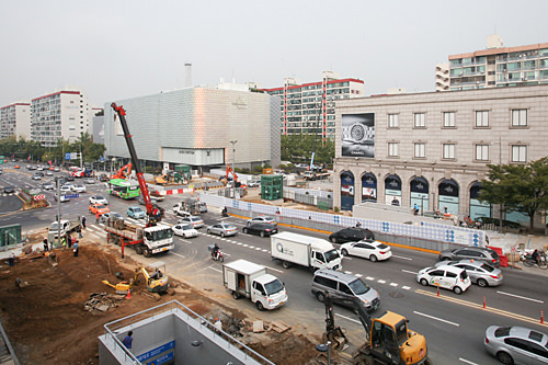 以前从地铁3号线狎鸥亭站需步行20分钟才能到罗德奥街,现在不用走几步就能到达。不仅如此,到Galleria百货店和清潭洞名品街的交通也比以前方便了很多。
