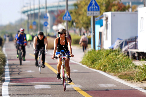 秋高气爽,正是运动的好时节!要说韩国的三大人气运动,非足球、棒球、篮球莫属。然而,骑自行车的热潮也只增不减,在秋阳高照的好天气里,沿着汉江骑自行车的人群不断映入眼帘。
