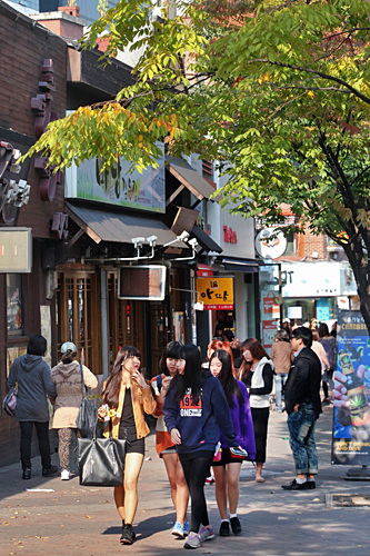 在树叶由绿变黄、秋意渐浓的首尔,一起到年轻人聚集的时尚地区——弘大,看看今年的秋季时尚趋势是怎样的吧。