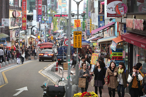 梨大周边的街道遍布着各具特色的美食店、展现青春时尚风的服饰店,还有许多在韩国小有名气的精致咖啡厅等。在此既能感受韩国女大学生朝气蓬勃的活力,又能淘到许多漂亮可爱的东东。这也许是梨大吸引众多中国游客的又一大魅力吧。