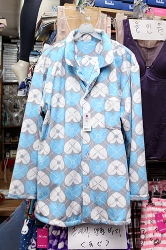 首尔最近最高气温一直持续在10度左右,不仅外套和围巾是必需的防寒用品,保暖内衣也是抵御严寒必不可少的秘密武器。在南大门市场已经可以看到各种各样的保暖内衣和睡衣在销售。