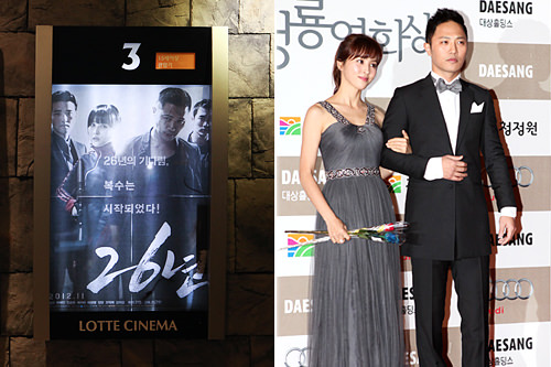 以光州民主化运动为背景的时代剧《26年》,在11月29日上映后连续2周占据周末票房的第1位,今后的总观影数很是让人期待。在这届的青龙电影奖上主演韩慧珍和陈久两人还同时登台担任过颁奖嘉宾。