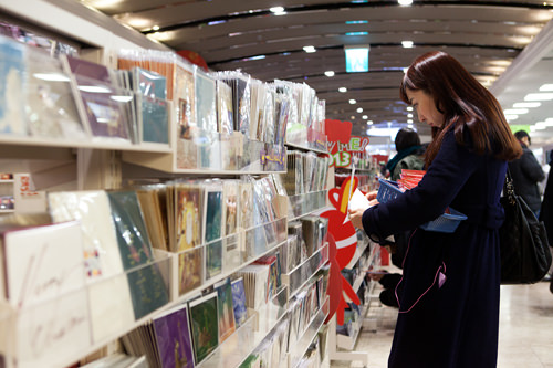 文具店里的贺年卡丰富多样。写有汉字“福”和画有象征吉祥意义的仙鹤的贺卡占据了绝大多数,1张大概1,000~2,000韩元,价格适中。
