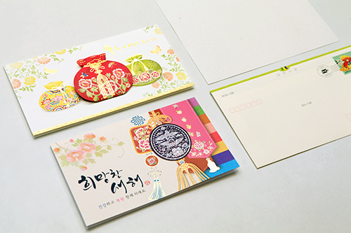 韩国各地的邮局也都售卖恭贺新年的明信片及卡片。卡片分700韩元和1,100韩元的两种,都附带含邮费(270韩元)的信封。若想邮寄至中国,须另追加费用,在窗口咨询办理即可。