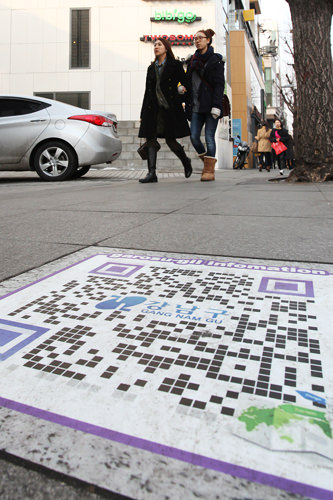 QR码印在人行道上边长为60厘米的四方形大理石上。除林荫道外,设有国际展示会场的COEX前也设置了QR码,现在共有8处正在试验运行。