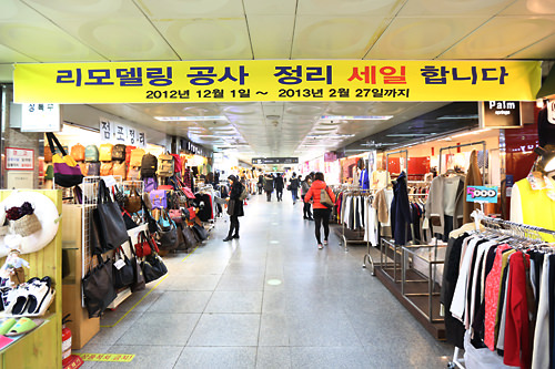 位于钟阁站的地下购物中心,将于今年3月~6月进行大规模的整修施工。因此,这里所有的店铺都在竞相大甩卖,会一直持续到2月末。