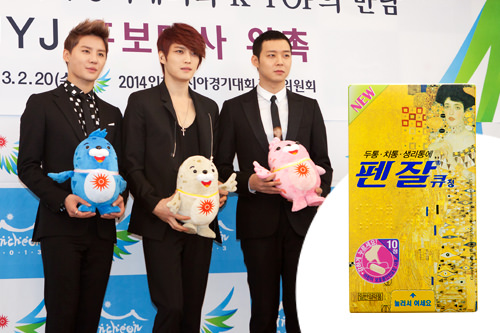 一播出就引起轰动的是JYJ代言的头痛药“PENZAL-Q”。广告场面为演唱会时粉丝出现头痛症状,JYJ在观众席里大声询问“谁有头痛药?”。很多人将这个场面套进新的台词,重新进行演绎。