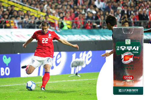 在韩国,对于爱喝酒的人来说,“urso”是必备的健康药品。它的广告代言人由曾在世界杯上表现活跃的车斗里担当。只要听一遍就忘不了的“都怪肝”广告曲人气很旺,广告受欢迎度也排在了第1名。