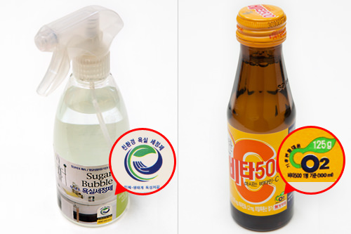 在韩国,还能看到许多呼吁环保的商标。有些健康饮品的商标上显示有二氧化碳的排出量,突显“亲环境”标志的洗涤剂也不少见。