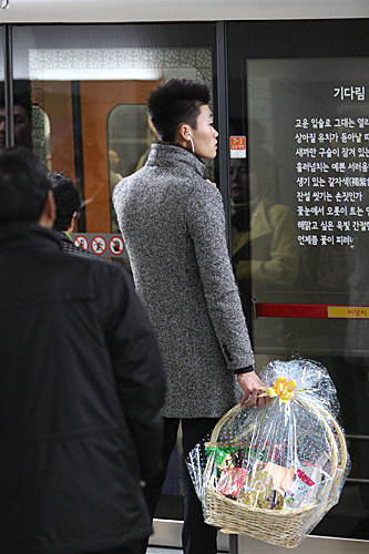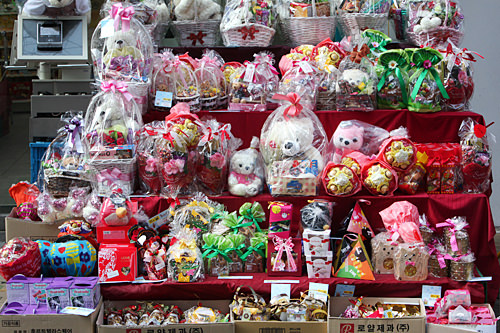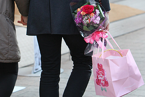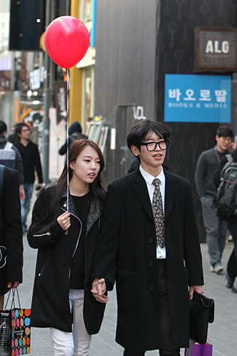 今天是3月14日,在韩国是白色情人节。走在大街上,手里拿着礼物的男生或情侣十分醒目。